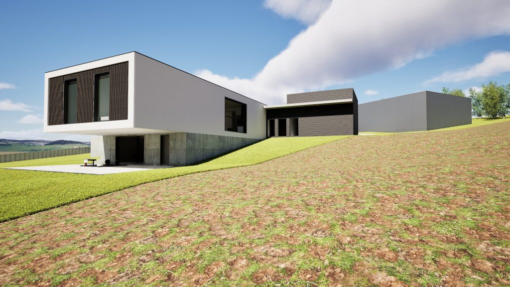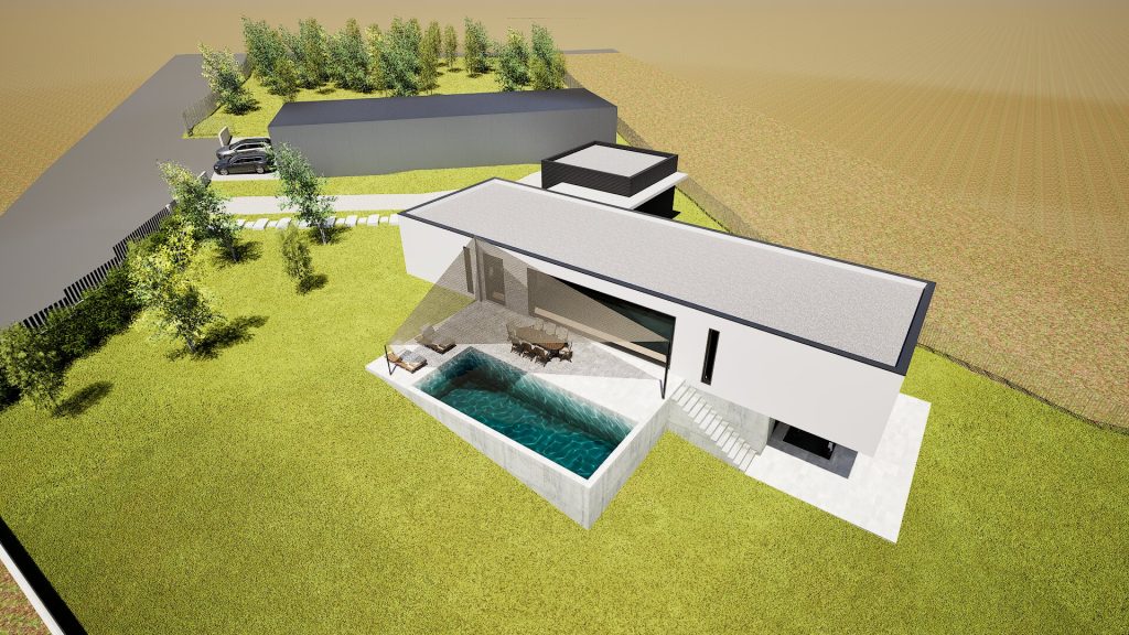 Este anteproyecto plantea una vivienda unifamiliar aislada en Abegondo que se adapta con precisión a la topografía del terreno, resolviendo el programa mediante una volumetría clara, horizontal y contemporánea.