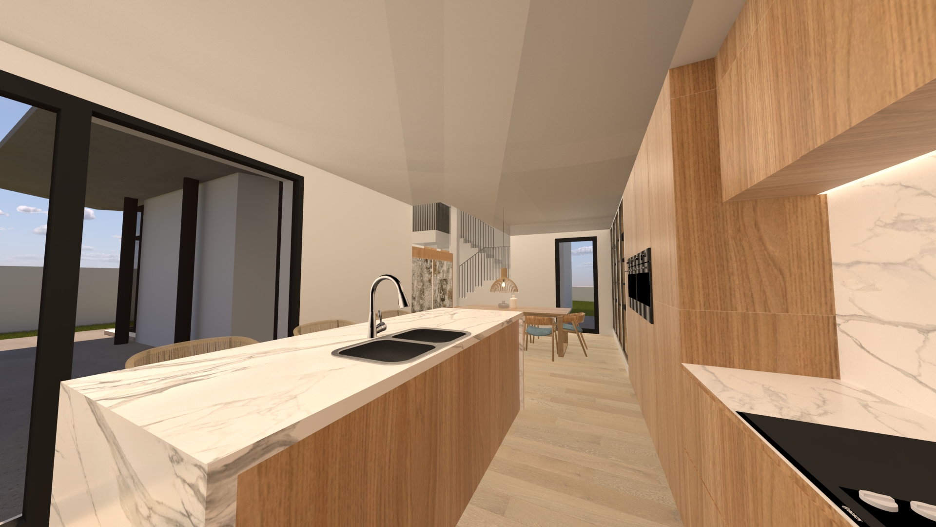 La intervención transforma una vivienda convencional en una arquitectura contemporánea, más funcional y mejor integrada en su entorno, donde la luz, la relación con el exterior y la claridad espacial son los protagonistas.