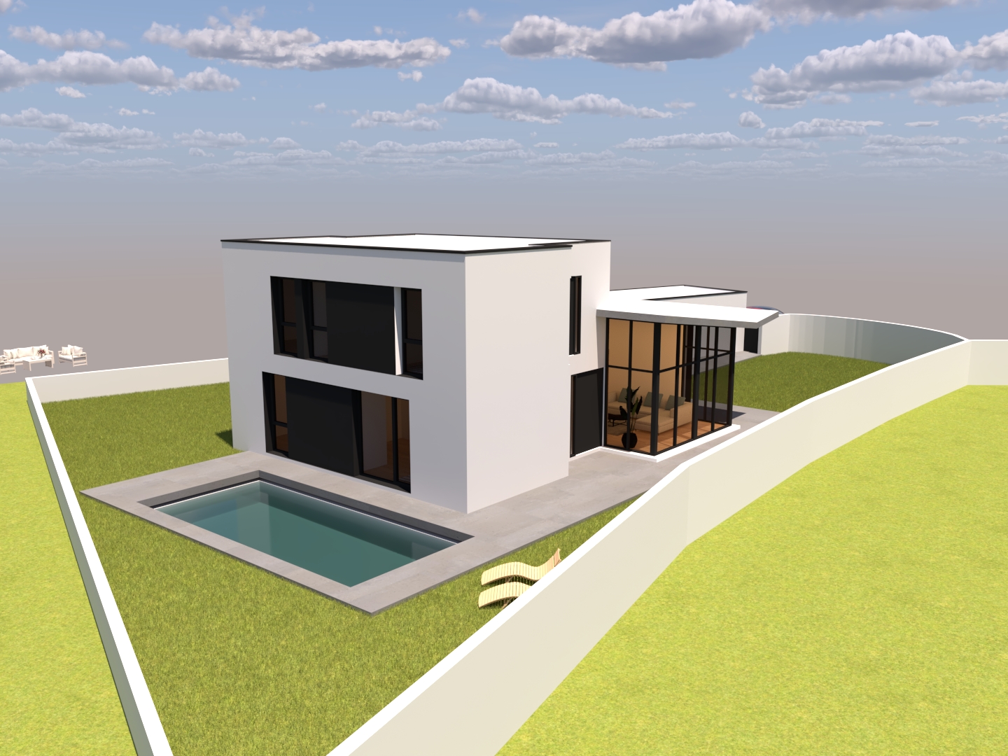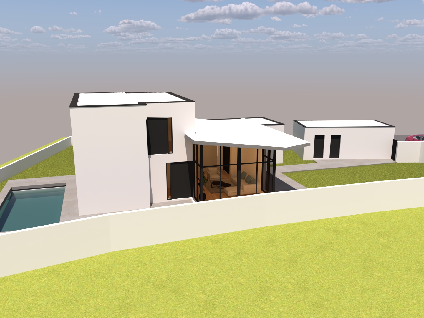 - Exterior: incorporación de piscina y espacios de estancia que prolongan la vivienda hacia el jardín.